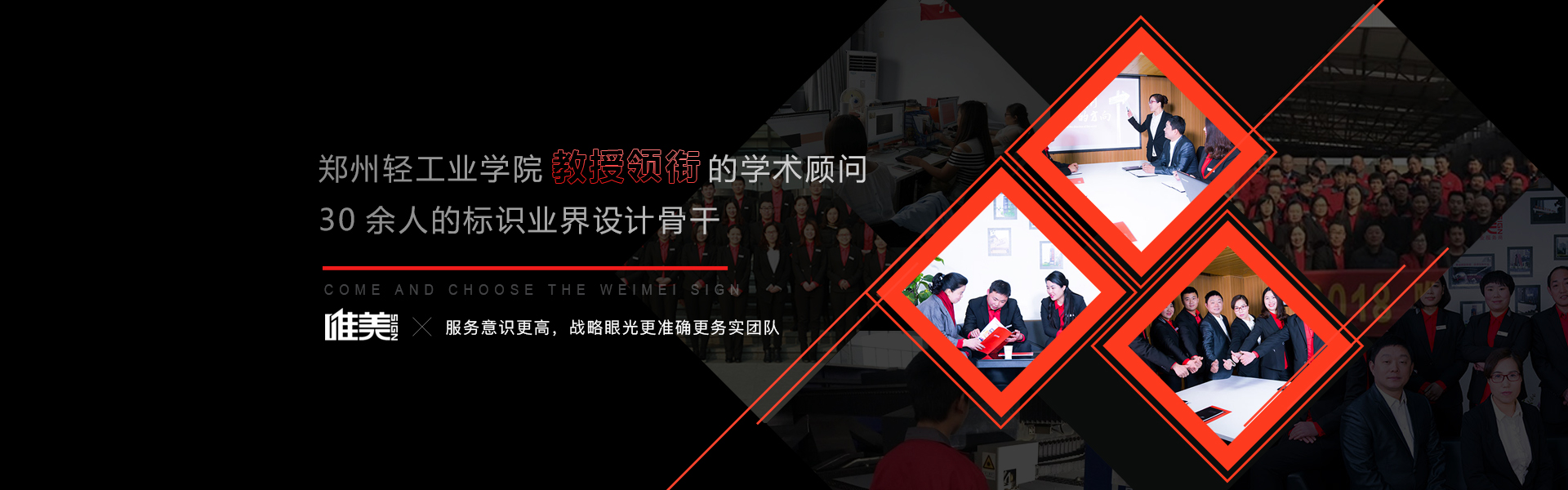 鄭州唯美標識設(shè)計制作公司擁有21000平方現(xiàn)代化生產(chǎn)車間、多臺先進設(shè)備、100多名技工團隊、12位資深設(shè)計師團隊,嚴遵19道制作工序和6S管理體系,成功服務(wù)2800多個標識項目,3...